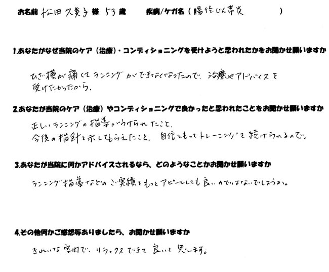 松田様 女性 4年連続フルマラソン年代別ランクイン