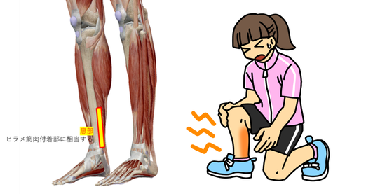 これらの筋が脛骨内側に付着しているため、ランニングやジャンプなどの反復動作によって骨膜が引っ張られ、炎症が生じます。